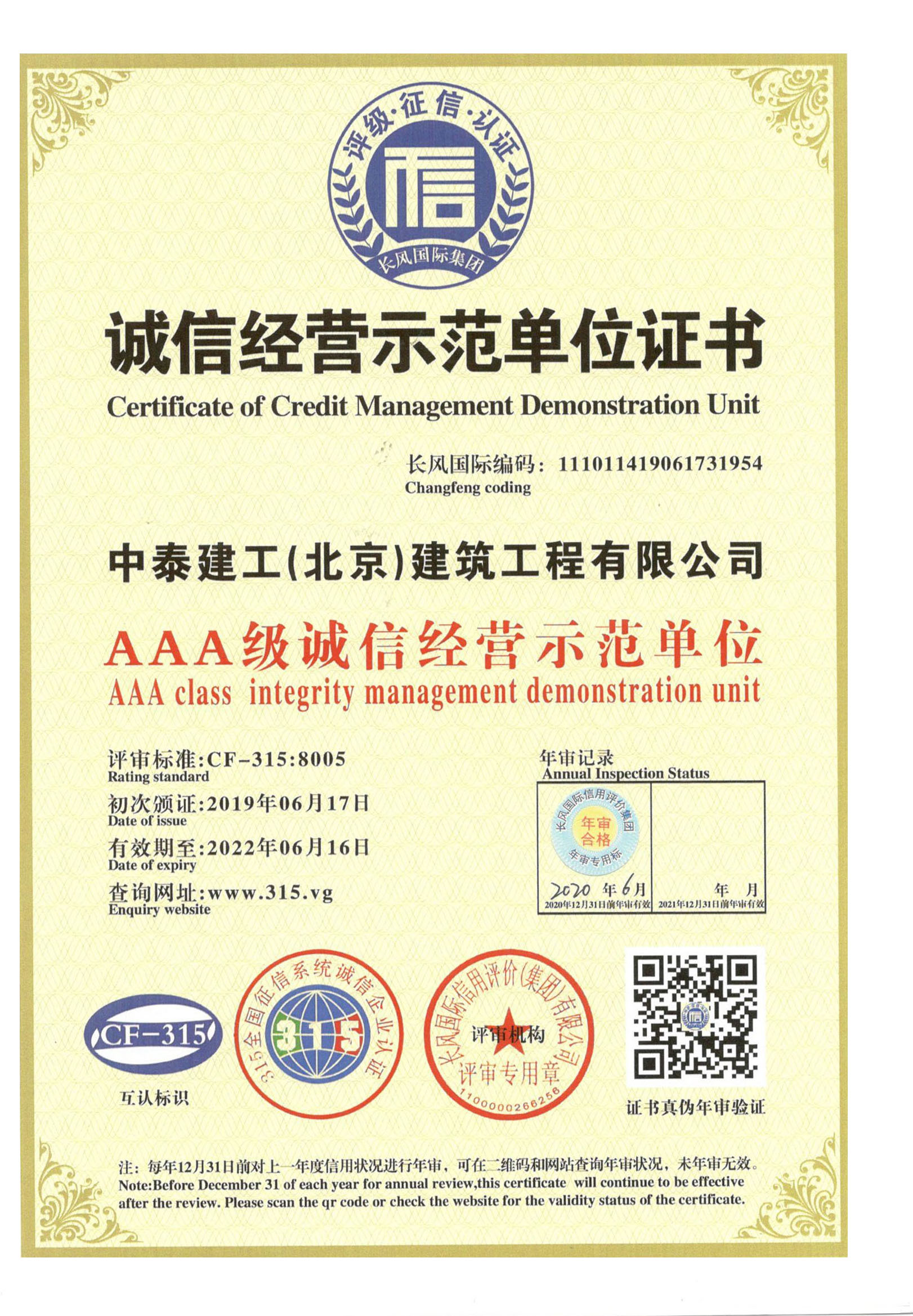 资信品级证书